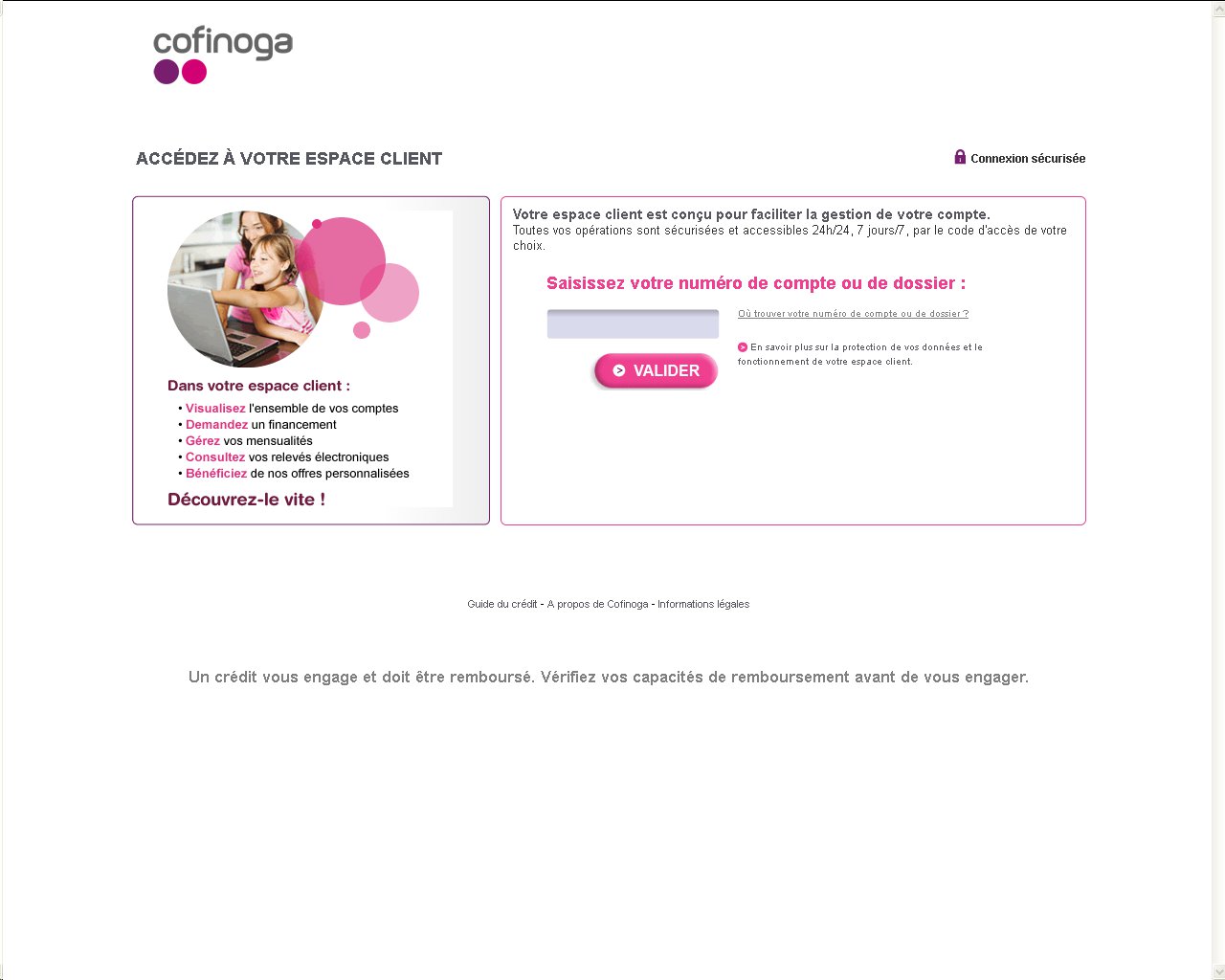 • L’accès à l’espace client est simple. Rend toi sur le site cofinoga.fr et clique en haut à droite sur l’onglet espace client. Ensuite rempli les informations personnelles et tu seras redirigés vers ton espace personnel.