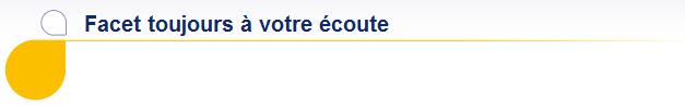 A partir de www facet fr vous pouvez consulter la rubrique Questions/Réponses afin de vérifier que votre question n’a pas déjà été traitée. Comme le FAQ, Facet regroupe les questions les plus fréquemment posées et y répond concrètement en ligne. Une fois connecté à l’espace client Facet, vous pouvez aussi contacter directement le service client Facet via le formulaire à remplir en ligne. Vous êtes insatisfait du service ou de la carte Facet ou vous souhaitez porter une réclamation, adressez vous directement au Service Consommateur Facet, 95908 Cergy Pontoise Cedex 09. Ces réclamations peuvent porter sur les points suivant : le service Facet, l’accueil, les produits. Enfin si aucune avancé n’est faite suite à votre courrier le dernier remède est d’écrire à Médiation aurès de Facet, ACI FCL 9065, 92595 Levallois Perret.