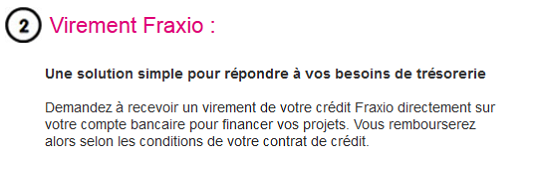 En cas de besoin sur un compte bancaire, pour ne pas tomber en découvert, il est aussi possible de demander un virement Fraxio vers votre propre compte bancaire. La procédure à suivre est la suivante : tout d’abord estimé le montant nécessaire pour remettre votre compte dans le vert, ensuite vérifier que vous avez la provision sur votre réserve et enfin faites la demande directement par téléphone en contactant un conseiller au 03 28 09 41 52. Parce que Fraxio Cofidis vous accompagne dans tous vos projets, n’hésitez pas à soumettre votre prochaine demande de prêt immobilier ou automobile.