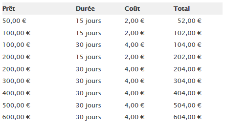 Payday est un acteur du micro crédit au Pays Bas mais aussi en Belgique. Il propose des crédits rapides et pour des petits montants sans trop de délais. Par exemple, un emprunt de 600 euros sur un mois vous coutera la modique somme de 4 euros. Grâce à ses offres éclaires, le groupe a aujourd’hui déjà plus de 100 000 clients dans les différents produits où il commercialise ses offres. Les durées courtes ne peuvent excédées trois moi et le montant est généralement inférieur à 1000 euros. Ainsi pour des achats qui ne peuvent pas attendre ou pour une demande d’avance de salaire, faites la demande en ligne www.payday.be
