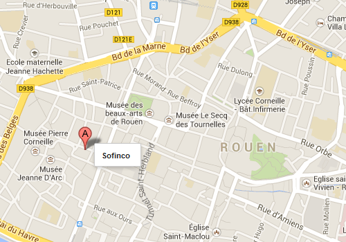 L’agence de Rouen situé près de la place du vieux marché est la seule agence Sofinco Rouen ouverte pour le moment. Pour y accéder, descendez à l’arrêt Palais de Justice puis longez la rue en direction de l’église Saint Jeanne D’Arc. Les conseillers crédit de l’agence de Rouen vous reçoivent principalement sur rendez-vous afin d’écouter vos projets et de vous apportez des réponses en terme de moyen de financement mais ils ont aussi un rôle de conseil et d’accompagnement. Organisme de crédit à l’écoute de ses clients, Sofinco se différencie grâce à la qualité de son service client et de ses outils de suivi mais aussi et surtout pour son implantation de ses agences de crédit sur tout le territoire français. Cette proximité permet à l’organisme de prêt de préparer par anticipation des solutions et des produits qui correspondent à la conjoncture économique et à vos problèmes dans la vie de tous les jours.