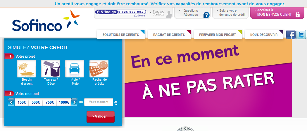 Saviez vous qu’il est possible d’accéder aux services de Sofinco en ligne ? Sur son site internet, Sofinco met à votre disposition ses différents produits : crédit auto, crédit réserve couleur, rachat de crédit, assurance… Vous pouvez également faire une simulation de crédit, un suivi de dossier de crédit ou gérer votre compte en ligne. Cet organisme met à disposition de ses clients un espace client sur son site officiel www.sofinco.fr