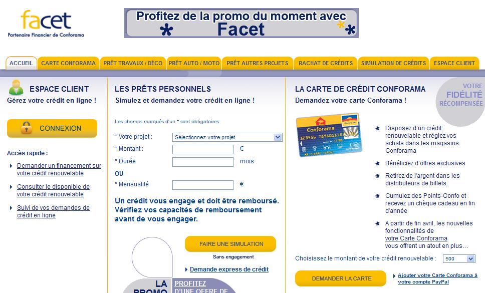 Facet est le spécialiste du crédit de Conforama qui commercialise en particulier des offres de crédit à la consommation.